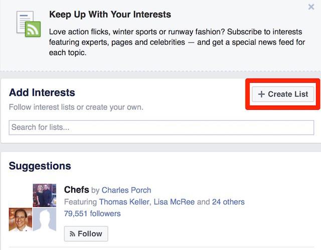 من هناك، سوف تكون قادرا على إما إنشاء قوائم اهتماماتك الخاصة أو متابعة قوائم أخرى تم إنشاؤها من قبل مستخدمي فيسبوك آخرين.